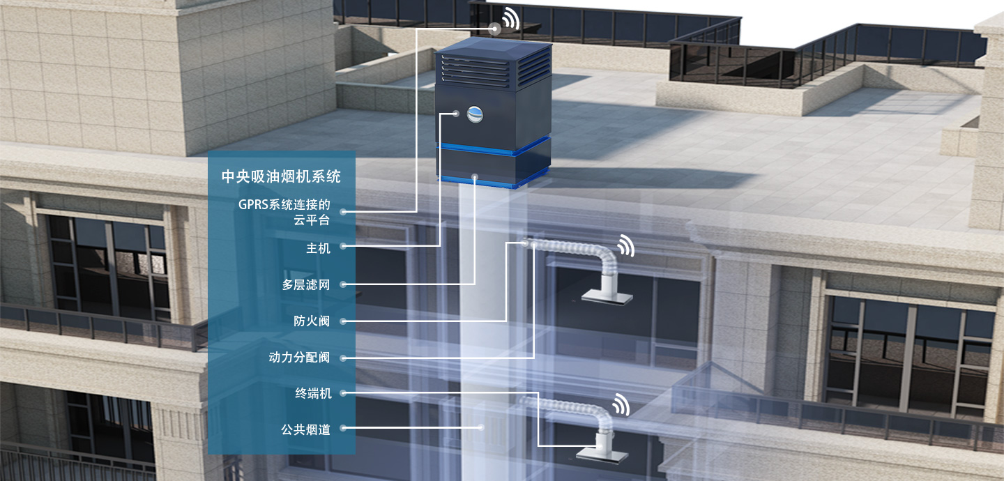 老板電器發明的中央吸油煙機,通過智能控制系統,收集用戶的油煙排放數據,對各樓層室內油煙機排放進行智能分配,在煙道總體通風量不變的情況下,提升各家各戶的排煙效率。同時,不同于油煙在煙道里面形成正壓通過相互擠壓的傳統外排原理,中央吸油煙機是通過樓頂主機負壓吸的模式把油煙外排到室外,因此做到了百分之百杜絕回煙串味。不僅是優化排煙,同時由于室內油煙機里無電機,電機裝在全樓共用的主機里,抽油煙機過去常見的噪音問題也會大幅緩解。而樓頂主機排氣時,基本過濾了所有油煙(99.5%凈化率),將潔凈空氣歸還于大氣,小區環境和社會總體福利也因此受益。運用系統算法智能優化的中央油煙機,不僅僅入選了北京市發改委頒布的《北京市2017年節能低碳技術產品即示范案例推薦目錄》、由中國建筑標準設計研究院頒布的《國家建筑標準設計圖集住宅排氣道》等多項標準,也在全國各地諸如北京首創天閱西山、杭州綠城柳岸曉風、上海融創香溢天地、昆明綠地海珀瀾庭等新樓盤運用。