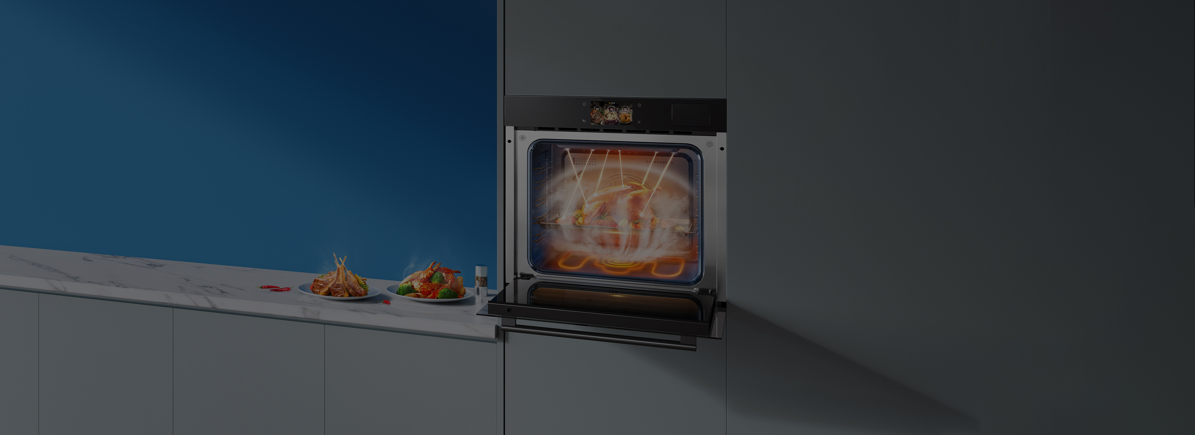 帶有澎湃大蒸汽系統(tǒng),預熱快、蒸汽量大,穿透力強,整體烹飪效率較高。